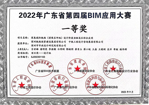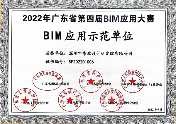 BIM應用示范單位獲獎證書
