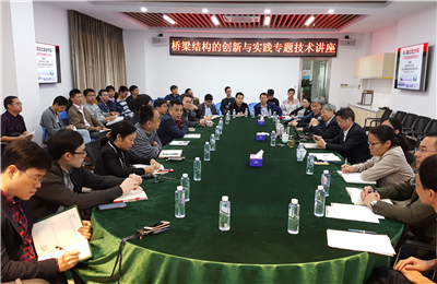 在二個多小時的報告中,聶院士首先深情回憶起二十年前和陳宜言董事長一起在深圳彩虹(北站)橋設(shè)計(jì)中開展組合橋面系結(jié)構(gòu)創(chuàng)新工作的經(jīng)歷和寶貴經(jīng)驗(yàn),贊揚(yáng)了我公司多年以來在堅(jiān)持以鋼-混凝土組合結(jié)構(gòu)橋梁為主的設(shè)計(jì)中取得突出成績。隨后聶院士系統(tǒng)介紹了鋼-混凝土組合結(jié)構(gòu)的最新研究成果,通過大量的工程設(shè)計(jì)案例數(shù)據(jù)對比,展示了在中、小跨徑橋梁中使用鋼-混凝土組合結(jié)構(gòu)的各項(xiàng)顯著優(yōu)點(diǎn),扭轉(zhuǎn)了設(shè)計(jì)人員在日常工作中的部分片面認(rèn)識,深刻理解了設(shè)計(jì)是工程靈魂的先進(jìn)理念。