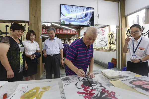懇談會(huì)后,家長(zhǎng)們來到公司八樓“職工之家”,參加了書畫交流活動(dòng)。魏治平、丁廣偉、董兵團(tuán)、徐怡、鄒國(guó)榮等多位書畫家現(xiàn)場(chǎng)揮毫潑墨、點(diǎn)染丹青。