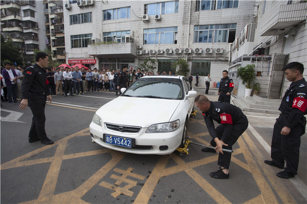 保安隊(duì)員迅速移車