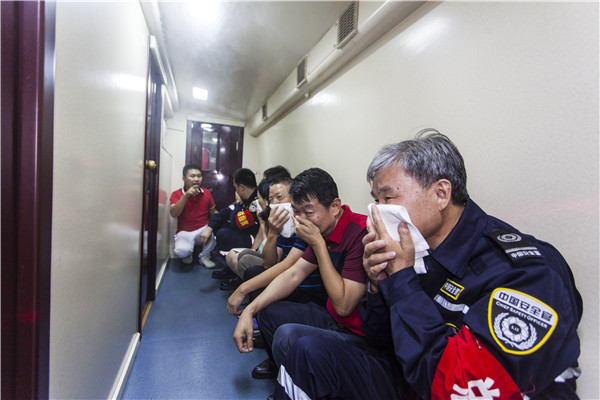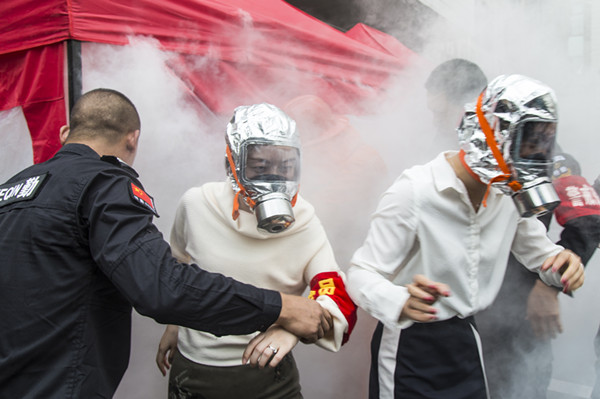 滅火毯、防煙面具、獨(dú)立無(wú)線煙感報(bào)警器、投擲滅火彈、環(huán)保水基型滅火器、穿越火災(zāi)煙霧場(chǎng)景帳篷等消防知識(shí)講解精彩紛呈。
