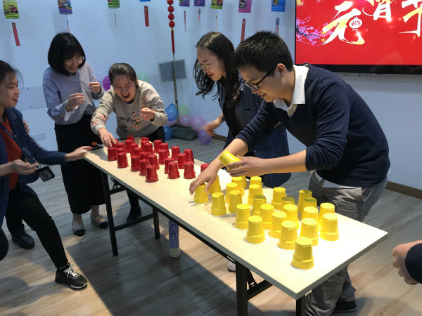 最后是精彩的游戲環(huán)節(jié),通過簡簡單單的紙杯設置了多個趣味十足的游戲,大家一同參與,緊張刺激而又其樂融融。
