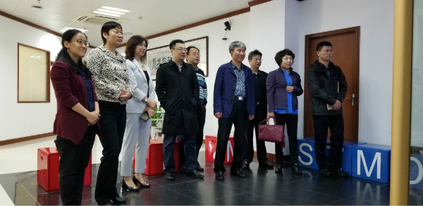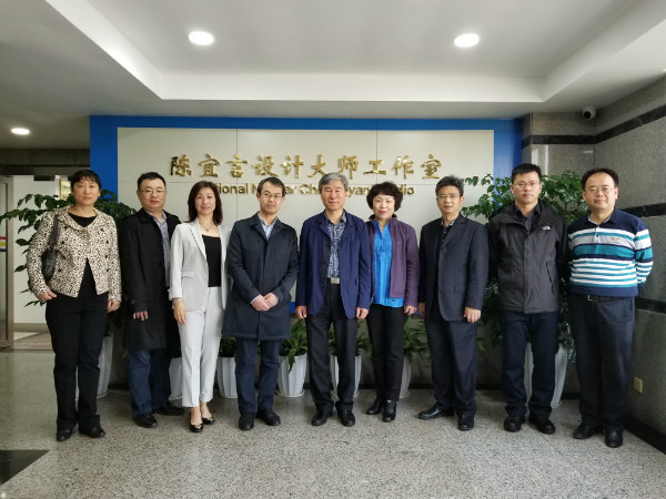 丁陽(yáng)教授一行在設(shè)計(jì)大師工作室專(zhuān)家團(tuán)隊(duì)墻前合影