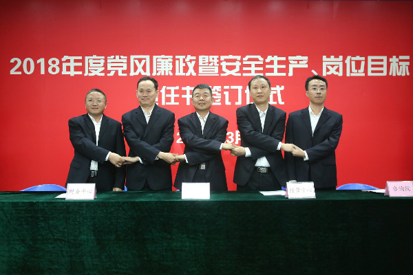 “千斤重?fù)?dān)眾人挑,人人肩上有指標(biāo)”,2018年黨風(fēng)廉政暨安全生產(chǎn)、崗位目標(biāo)責(zé)任書的簽訂,標(biāo)志著新一年各項(xiàng)工作全面分解落實(shí),希望大家不忘初心,在新時代新使命的召喚下,在新思想的引領(lǐng)下,堅(jiān)韌不拔,鍥而不舍,腳踏實(shí)地,確保2018年度各項(xiàng)目標(biāo)圓滿完成,公司發(fā)展更上一個臺階。