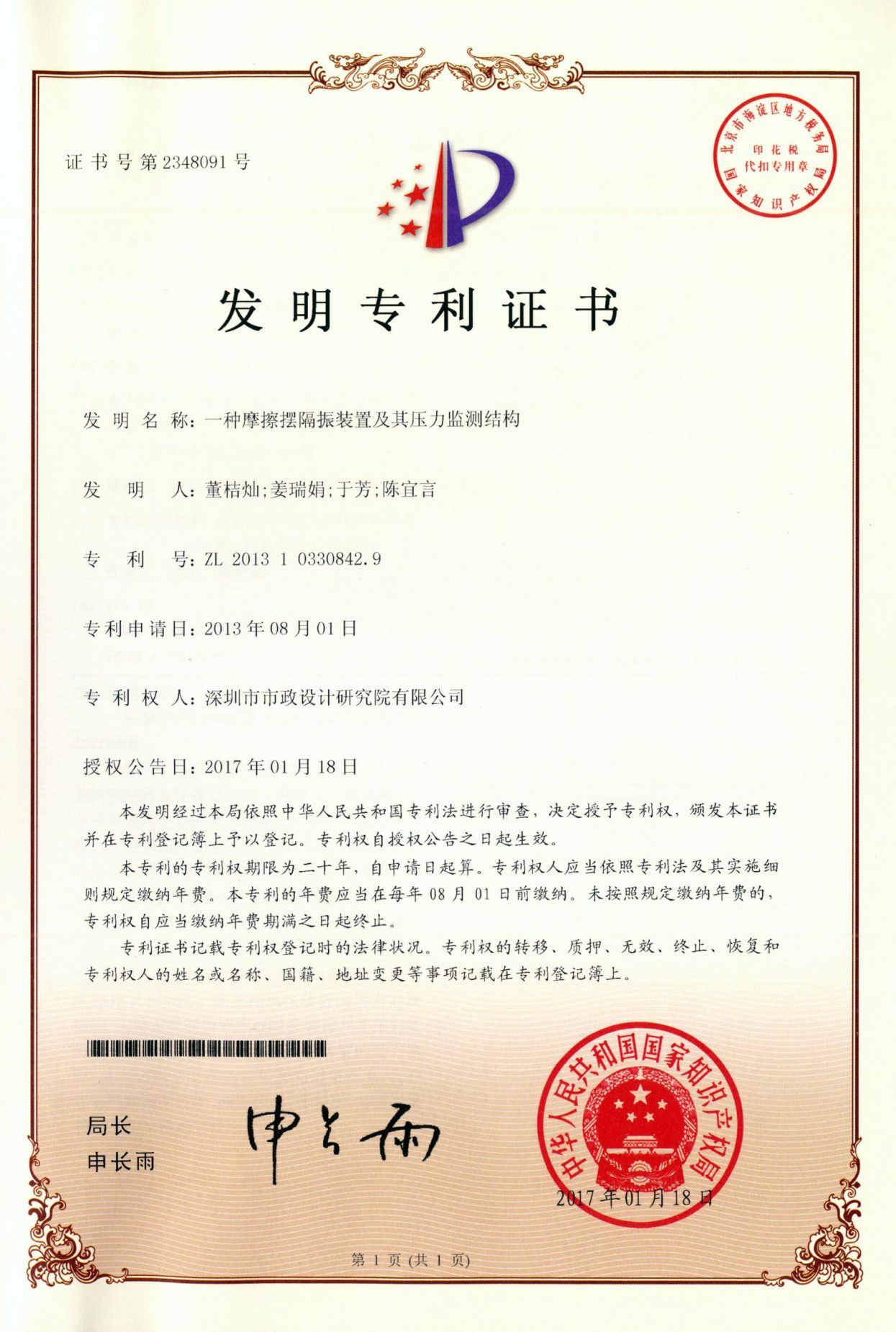一種摩擦擺隔振裝置及其壓力監(jiān)測結(jié)構(gòu)