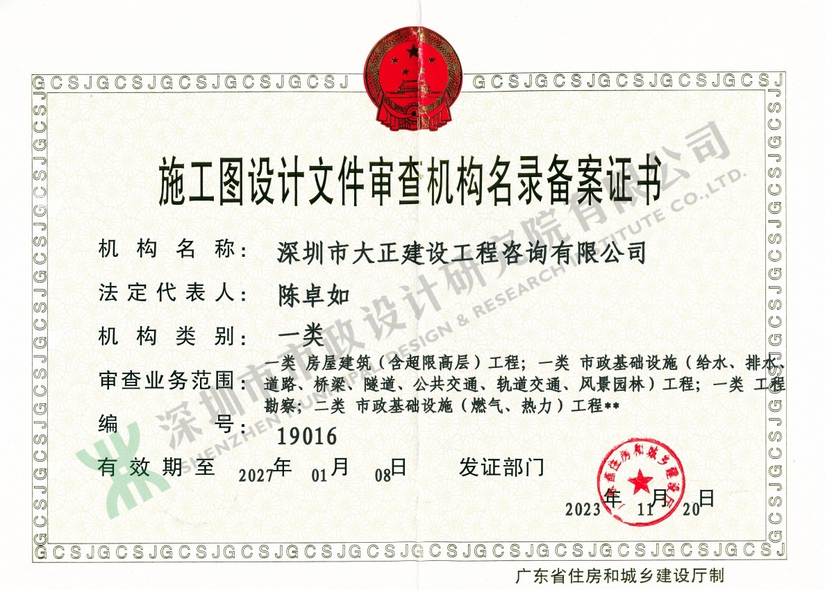 施工圖設(shè)計(jì)文件審查機(jī)構(gòu)名錄備案證書(shū)